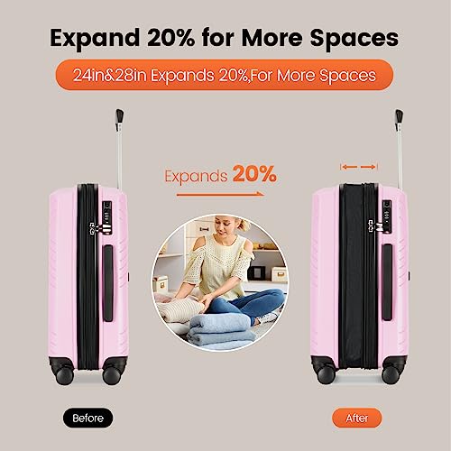 GinzaTravel Rune series expandable 3 Luggage Sets,Lightweight Hardside Suitcase With Spinner Wheels TSA Lock,PP material business fashion suitcase