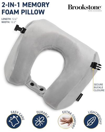 OFFICIALLY LICENSED BROOKSTONE: 2 in 1 Memory Foam Travel Pillow; Distinctive, innovative, and quality products for women, men, and kids of all ages; The new Brookstone travel accessories line is designed to add elevated comfort, organization and storage to travelers at affordable prices. Visit our store to find gifts any traveler will love and adore!